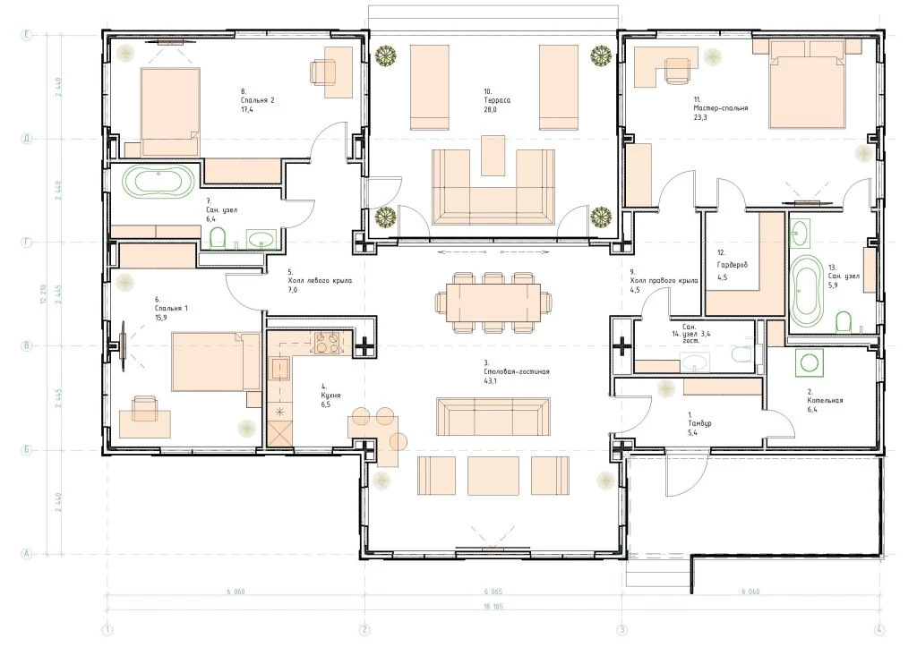 Бесплатный дизайн-проект, разработанный нашими архитекторами, в котором собраны все готовые планировочные решения и спецификации по проведению отделочных работ.